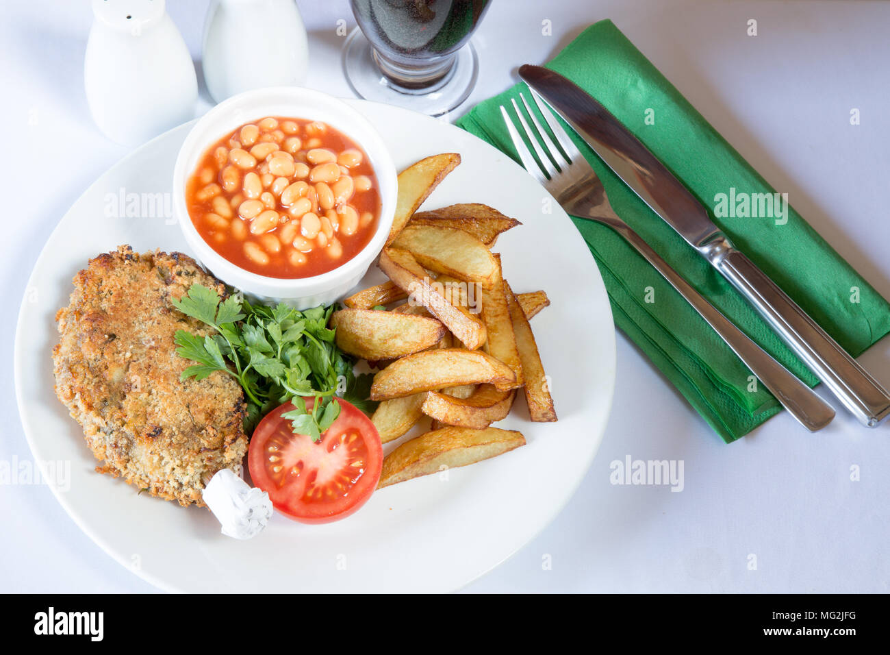 Classico Pub Inglese Piatto Di Durham Cotoletta Con Patatine Patatine Fritte E Fagioli Al Forno Foto Stock Alamy