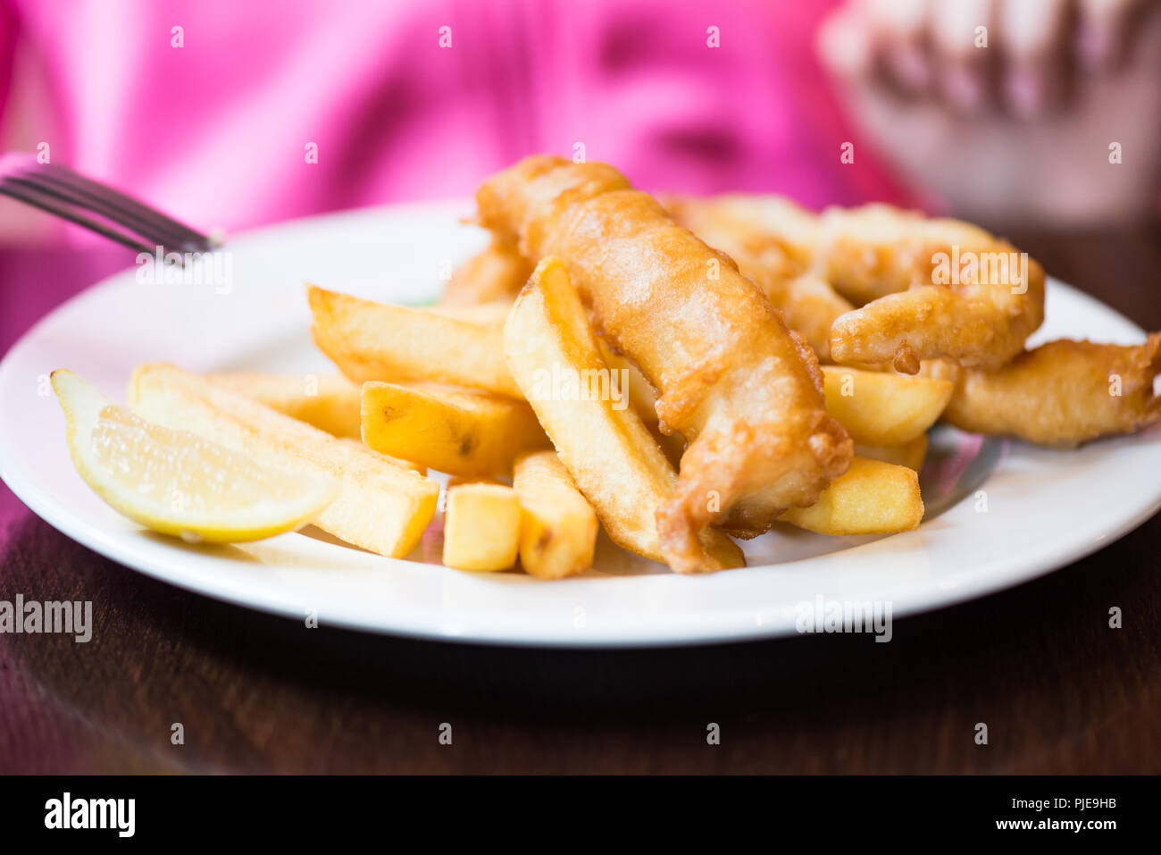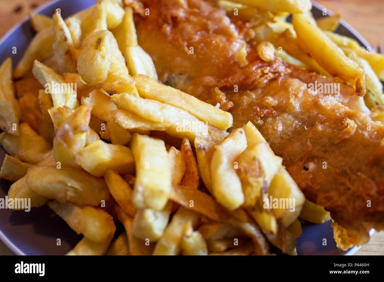 Inglese Tradizionali Fatti In Casa A Base Di Pesce E Patatine Patatine Fritte Su Una Piastra Close Up Foto Stock Alamy