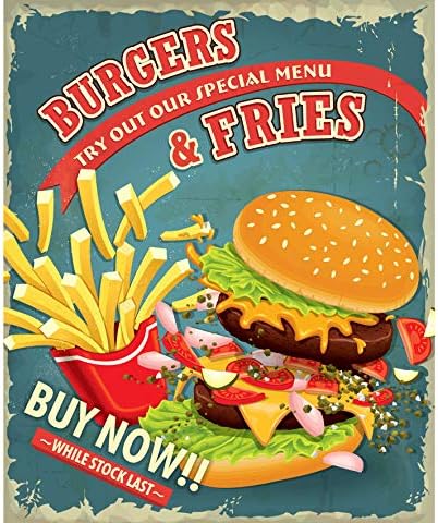 Epochsign Targa In Metallo Con Scritta In Lingua Inglese Hamburgers Patatine Fritte In Stile Retro Amazon It Casa E Cucina