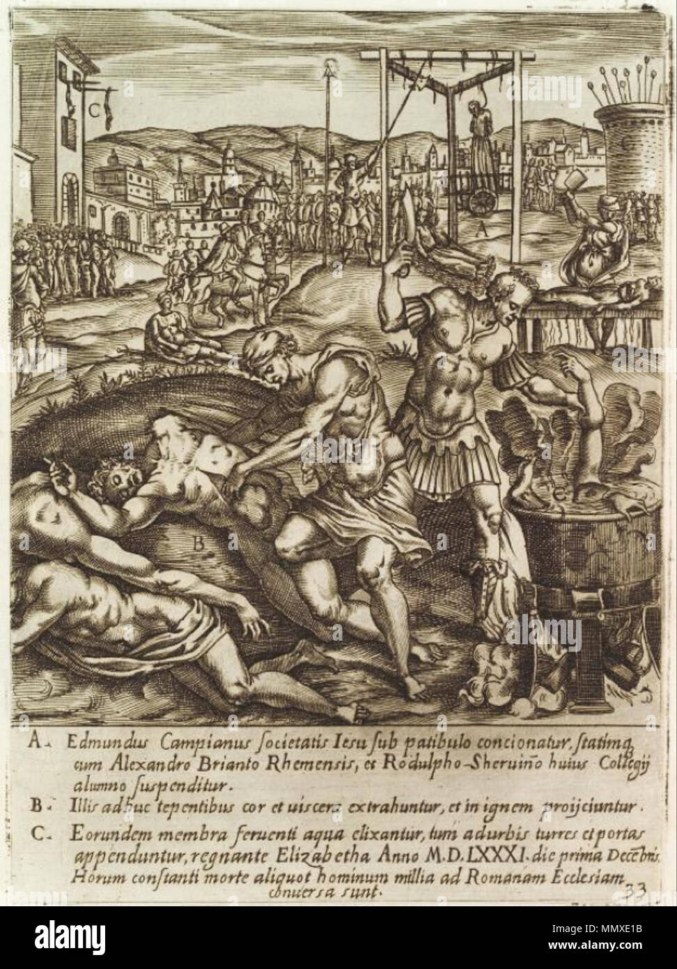 Inglese Esecuzione Di Edmund Campion Alexander Briant E Ralph Sherwin Incisione Di Giovanni Battista Cavalieri Dopo