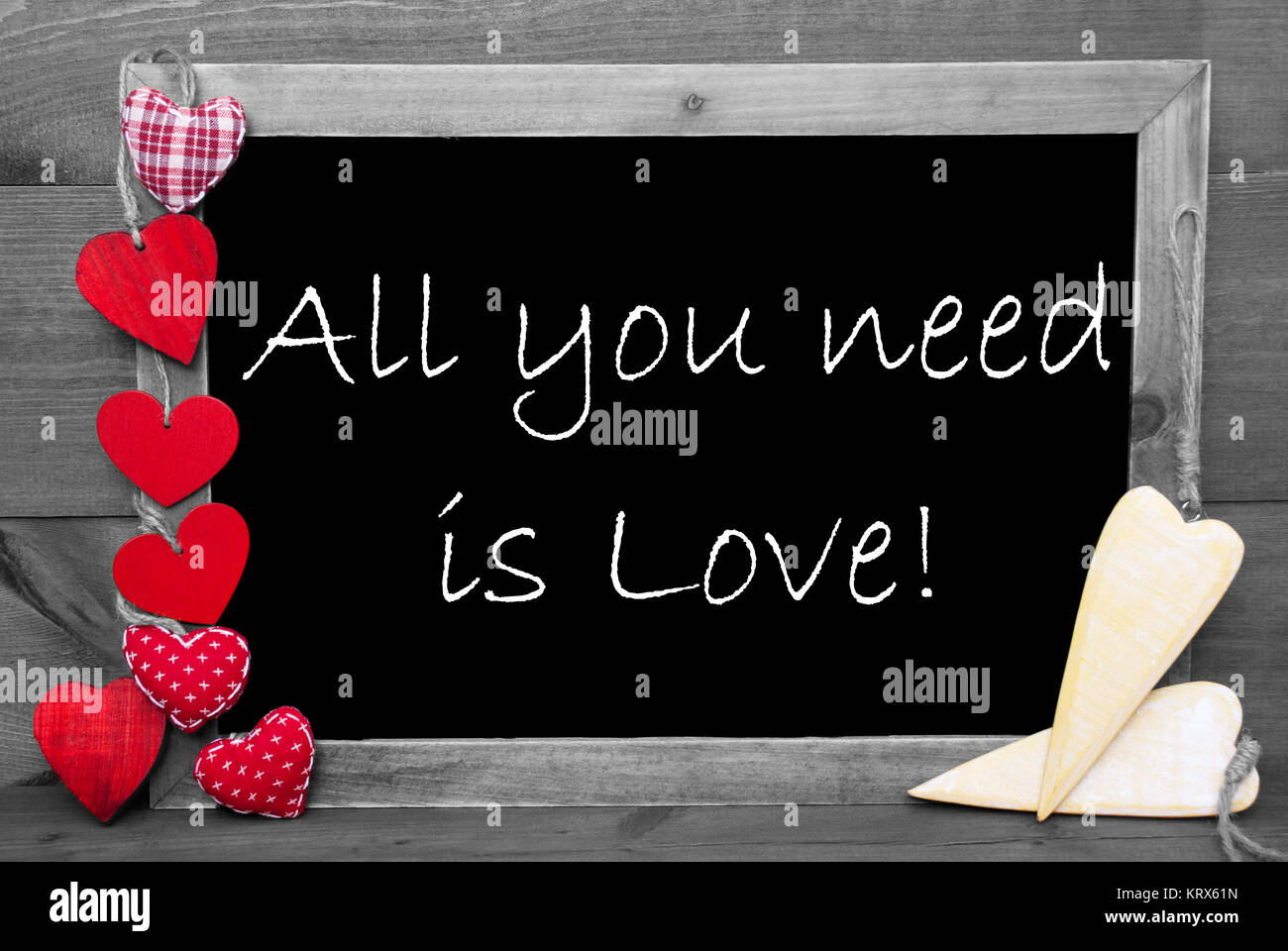 Lavagna Con Preventivo In Inglese Tutto Cio Di Cui Hai Bisogno E L Amore Cuori Rossi Sfondo Di Legno Con L Annata Rustico O In Stile Retro Immagine In Bianco E Nero Con Colorato