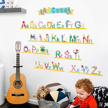 Adesivi Murali Cartoni Animati Alfabeto Inglese Camera Dei Bambini Layout Scuola Materna Adesivi Murali Scuola Materna Bambino60 90cm Amazon It Prima Infanzia