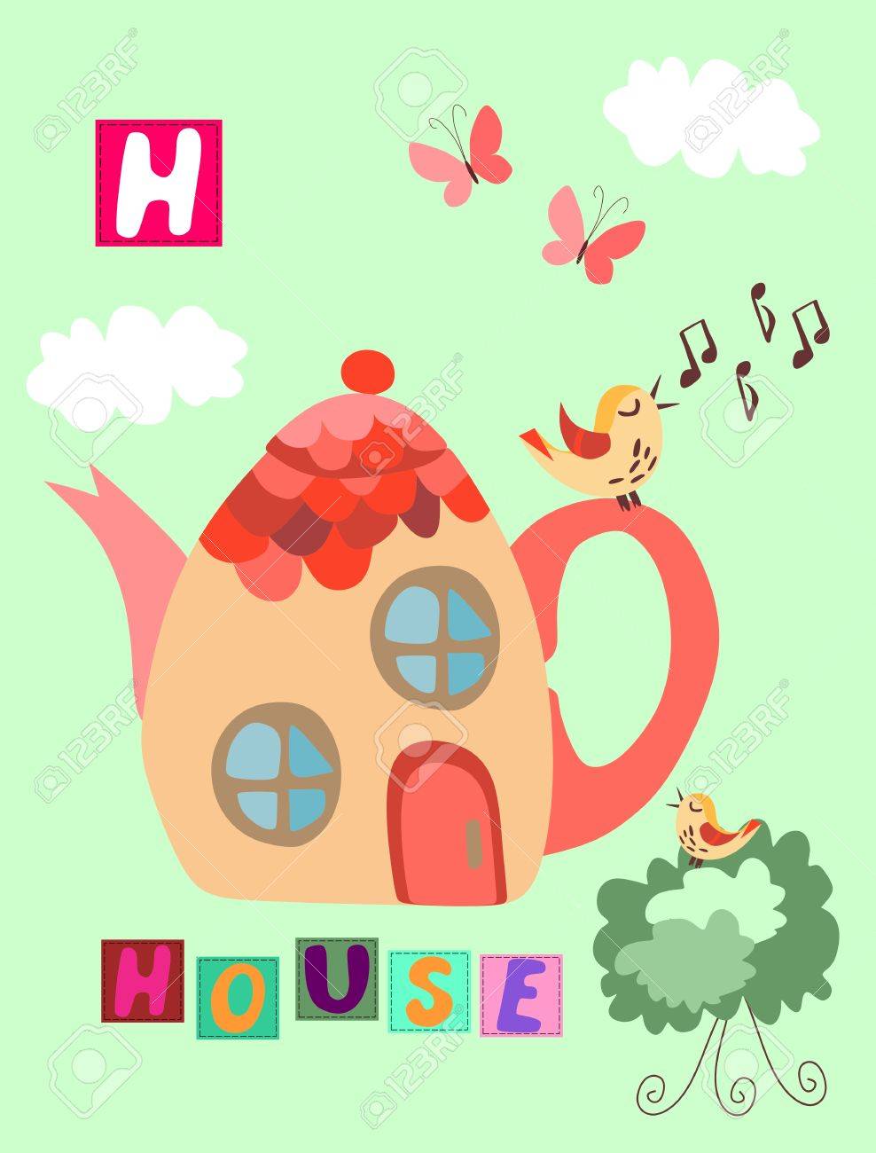 Vettoriale Storia Del Te Cartone Animato Inglese Alfabeto Immagine Colorata E Parola Bambini Vettore Abc Su Sfondo Verde Lettera H House Image