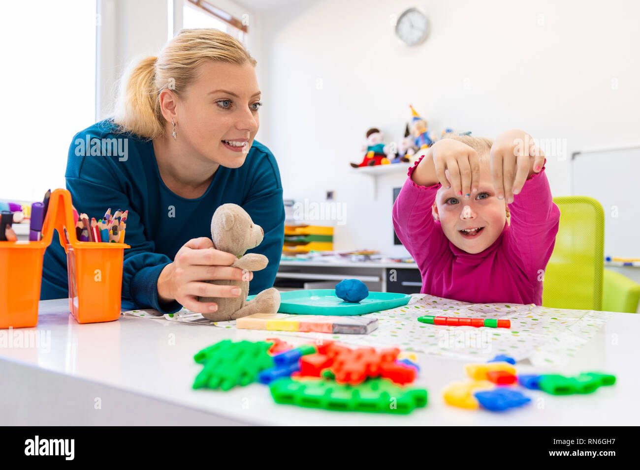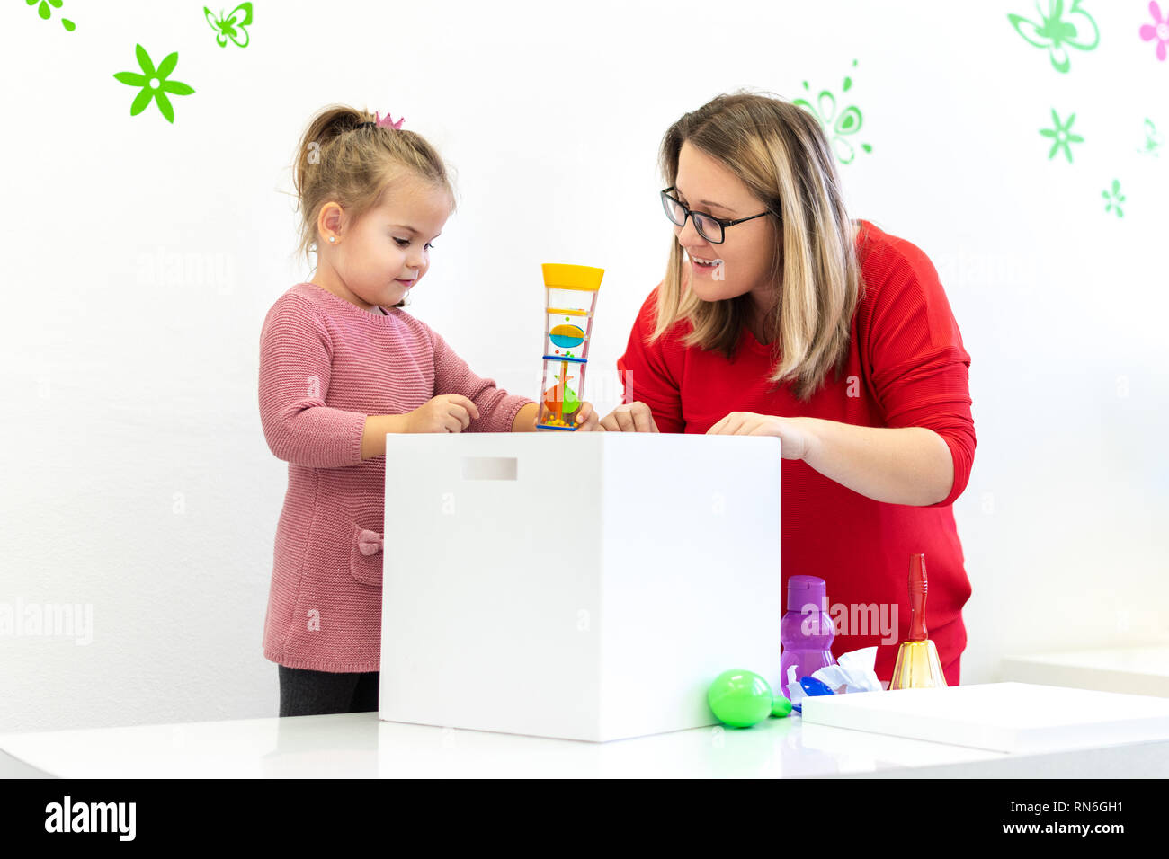 Nino Nina En Sesion De Terapia Ocupacional Infantil Juguetona Sensorial Haciendo Ejercicios Con Su Terapeuta Fotografia De Stock Alamy