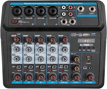 Depusheng Console Mixer Audio Digitale Portatile A 4 Canali Con Scheda Audio Bluetooth Usb Alimentazione Phantom 48v Per Registrazione Su Pc Dj Amazon It Strumenti Musicali E Dj