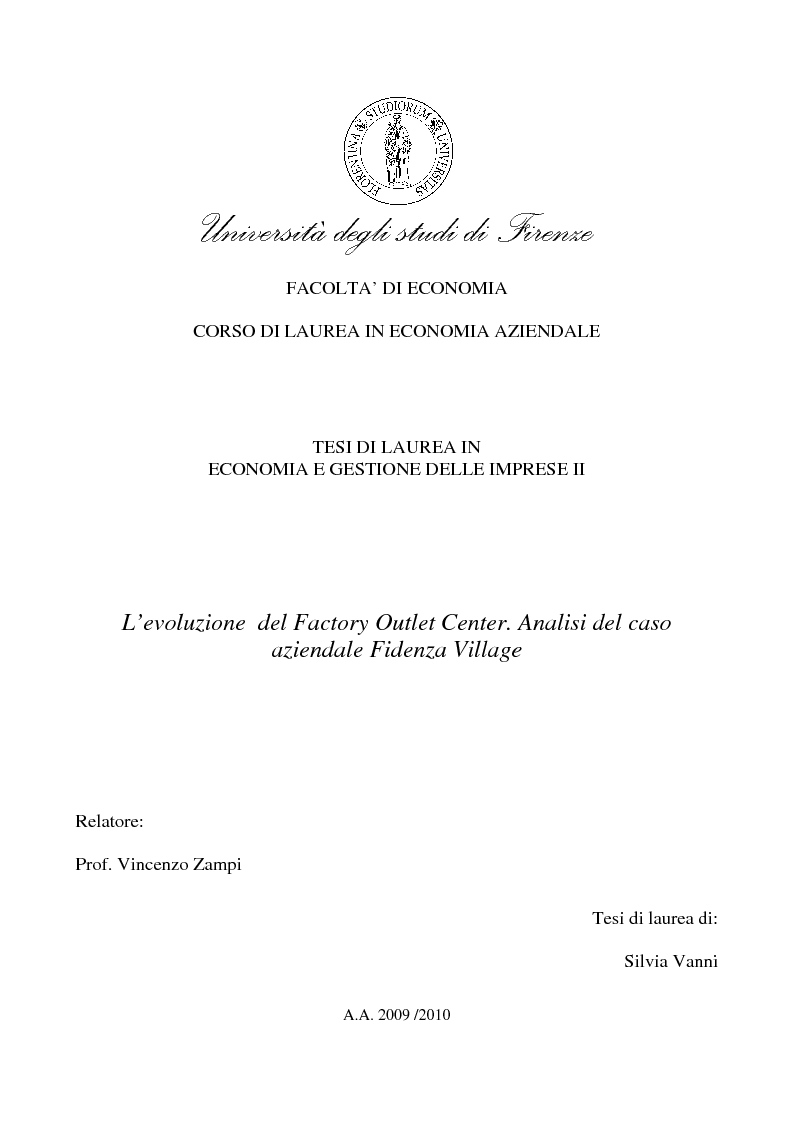 Facolta Di Economia Corso Di Laurea In Economia Aziendale Tesi Di Laurea In Economia E Gestione Delle Imprese Ii L Evoluzione Del Factory Outlet Center Tesionline