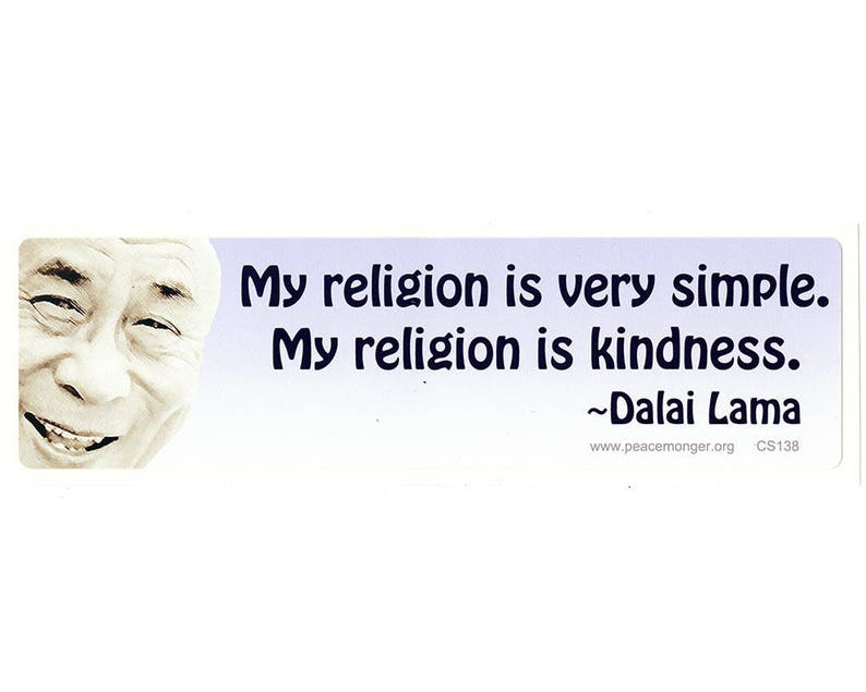 My religion is very simple My religion is kindness ~ Dalai Lama Too often we underestimate the power of a touch, a smile, a kind word, a listening ear, an honest compliment, or the smallest act of caring, all of which have the potential to turn a life around —Kindness Quotes – Inspirational Quotes, Pictures and Thoughts. My Religion Is Very Simple My Religion Is Kindness Dalai Lama Magnetic Small Bumper Sticker / Decal Magnet (625" X 175") Description Easily promote and express this popular positive message with a removable magnetic sticker!. The key question, then, is why religious people are generally less intelligent And the authors did not shy away from the answer, offering three compelling explanations 1 Intelligent people are.