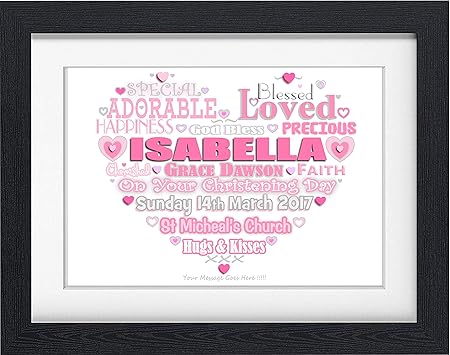 Word Art Gifts Cartolina Personalizzabile Per Battesimo E Bambina Stampa Tipografica Formato A5 A3 Con O Senza Cornice Colori A Scelta E Parole Unframed Amazon It Casa E Cucina