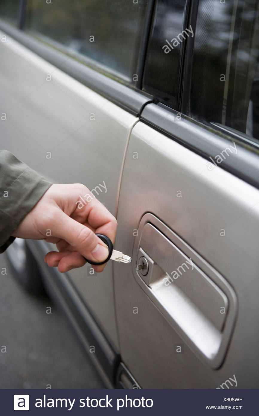 Uomo In Piedi Accanto Alla Macchina Con La Chiave Rotta Nella Serratura Foto Stock Alamy