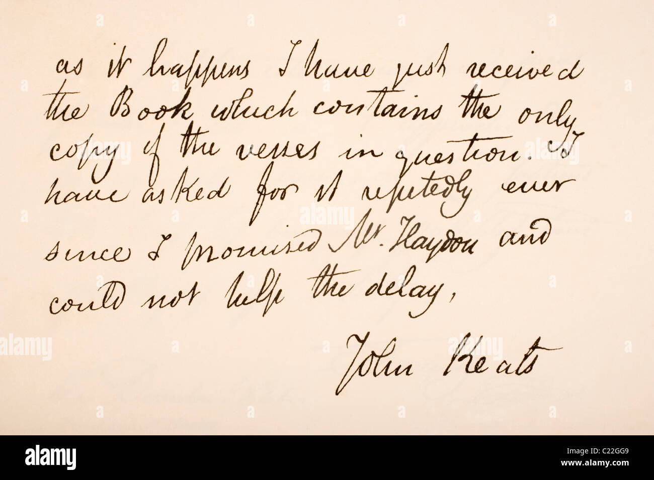 John Keats 1795 11 Poeta Romantico Inglese La Scrittura A Mano Campione Foto Stock Alamy