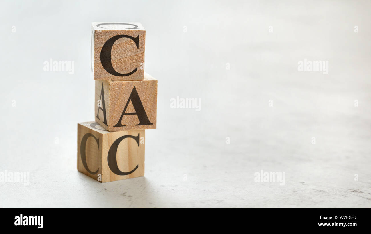 Palo Con Tre Cubi Di Legno Lettere Cac Significato Il Cliente Il Costo Di Acquisizione Su Di Essi Spazio Per Piu Di Testo Immagini Sul Lato Destro Foto Stock Alamy