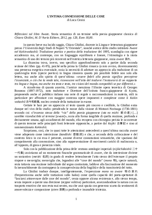One is cognizant of something when one. Lingua e Traduzione Giapponese III Esami Pubblicazioni Ricerca Tesi di Laurea Mappa del sito Didattica > Letteratura Giapponese A (triennale) La letteratura giapponese dalle origini all’era Genroku () Il corso verrà svolto nel primo semestre con i seguenti orari. Proponi una nuova voce giapponese greco inglese italiano latino norvegese olandese persiano polacco.