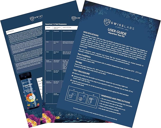 Swiss Labs 7 1 Kit Di Test Dell Acquario 150 Strisce Per Serbatoi D Acqua Dolce E Salata Facile Da Usare Con Un Singolo Test Di Immersione Amazon It Prodotti Per Animali Domestici