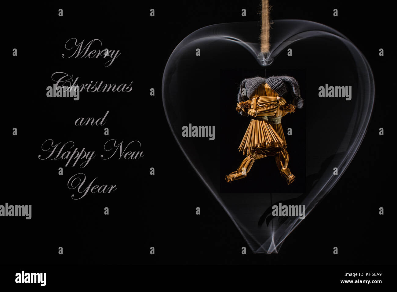 Auguri Di Natale Con Bambole Di Paglia Danzanti In Un Cuore Di Metallo Rotante E Con Il Testo Buon Natale E Felice Anno Nuovo Foto Stock Alamy