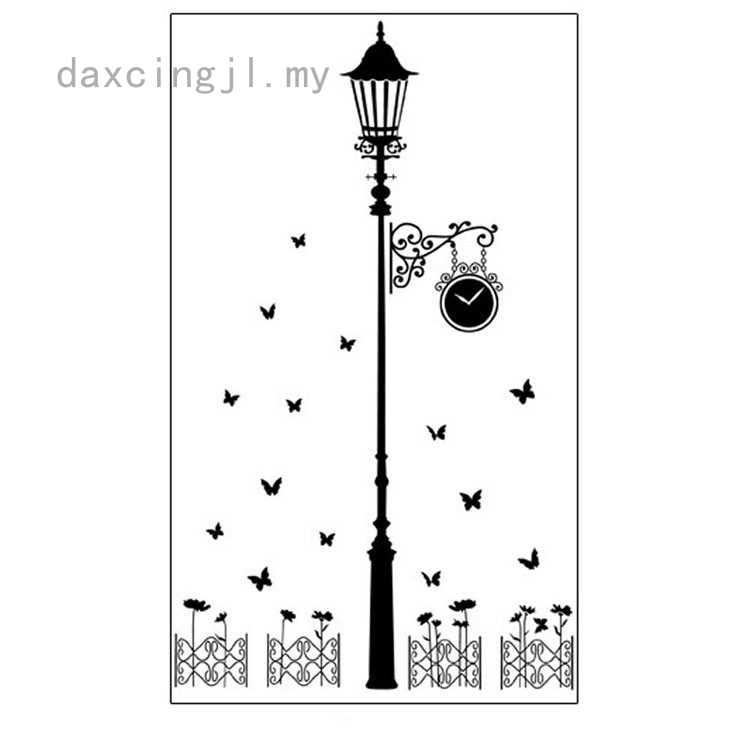 Daxcingjl Hot Sale Clock Street Lamp Post Butterfly Decal Sticker Wall Art Diy Home Decor Mural Art Shopee Malaysia