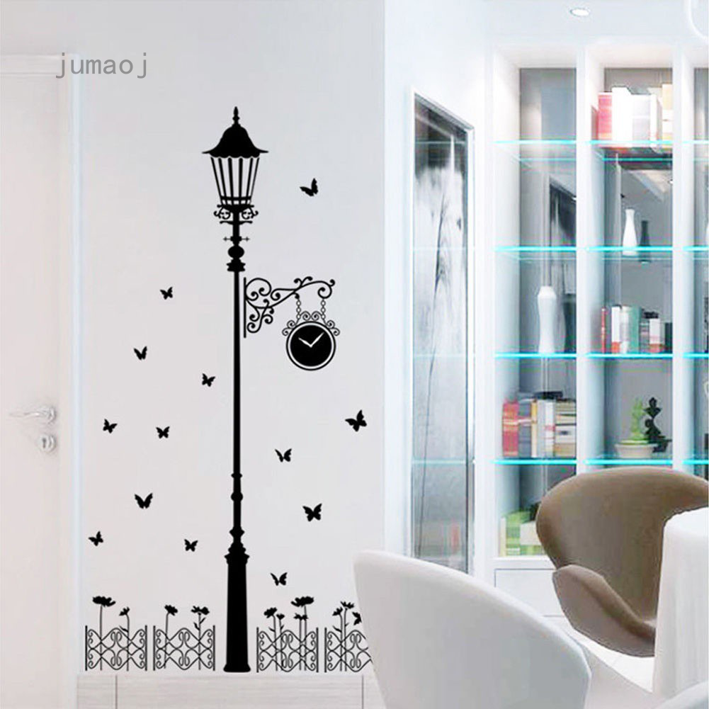 Jumaoj Clock Street Lamp Post Butterfly Decal Sticker Wall Art Diy Home Decor Mural Art Shopee Singapore