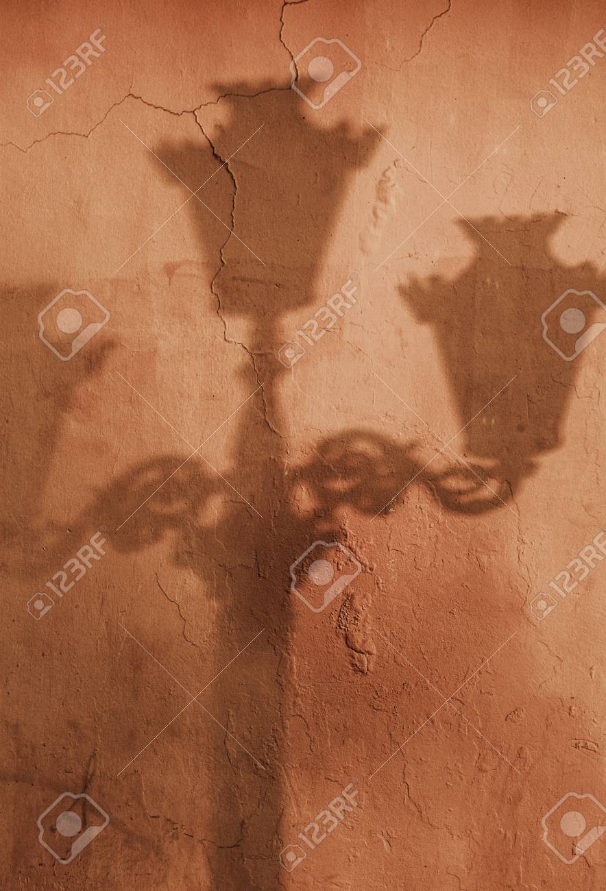 Shadow Of Old Street Lamp Post On Wall Stock Photo Picture And Royalty Free Image Image