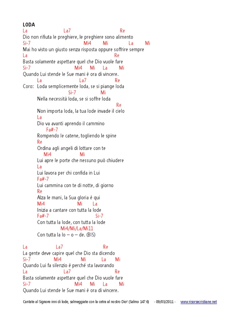 L'app ufficiale dell'innario "parole" contenente i 700 cantici di Inni di Lode ricerca cantici attraverso qualsiasi parola contenuta in essi;. Inni di lode Se pace qual fiume Alzo le mani Mi rialzerai Ai piedi della croce Sono qui a lodarti Ritorno a te Primo amore Stringimi Signor Grande sei tu Allora loda Il centurione Signore vengo a te Sposa amata Romani 8 28 Più che vincitori. Cantico Inni di lode n 143 in LIS Lieta Certezza CULTO SORDI ZOOM Prov 163 Affida al SIGNORE le tue opere, e i tuoi progetti avranno successo.
