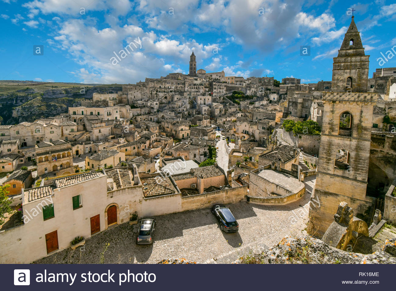Vista Del Sasso Barisano Torre Citta Vecchia Grotte Dei Sassi E Area Turistica Dal Convento Di San Agostino Nella Preistoria Citta Di Matera Italia Foto Stock Alamy