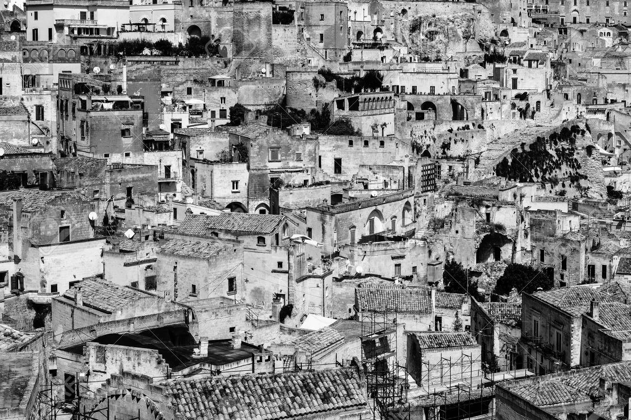 Immagini Stock Sassi Di Matera Vista Sulla Citta Antica Grotta Italiana Bianco E Nero Image