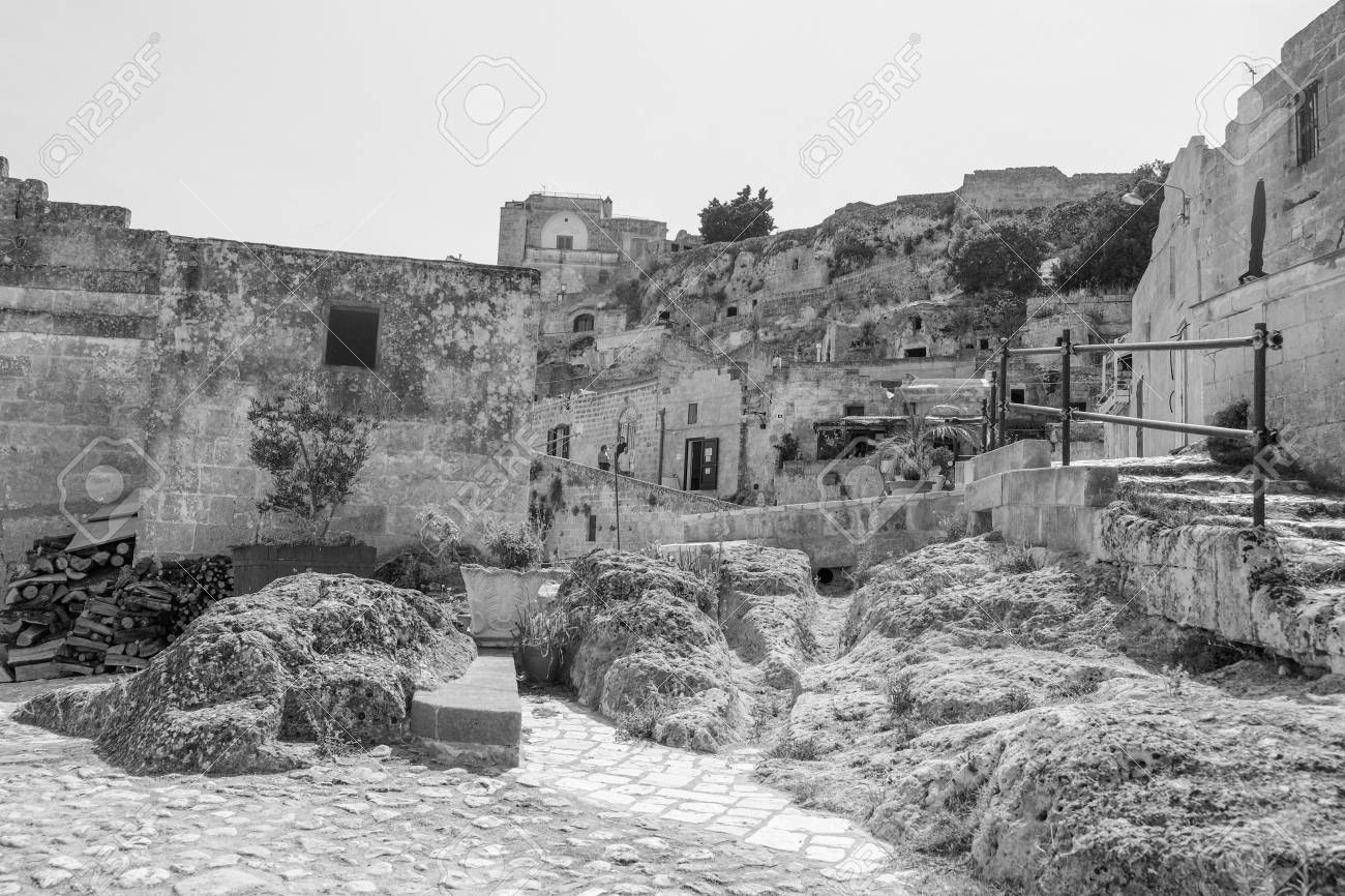 Immagini Stock Sassi Di Matera Scale Di Strada Nella Citta Antica Grotta Italiana Bianco E Nero Image