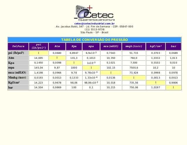 Tabela Conversao Unidades De Pressao Tabela Conversao Unidades De Pressao Docsity