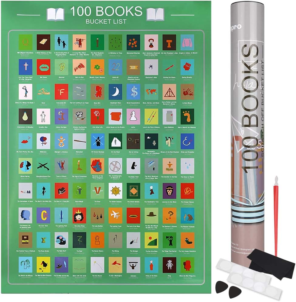 42x60cm Film Lista Dei Desideri Di Libri Per Gli Appassionati Di Lettura 6 Pezzi Di Accessori Anpro Poster 100 Libri Da Grattare Poster E Stampe Arte