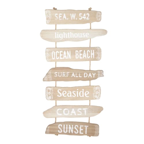 Decorazione Da Parete Listelli In Legno Di Paulonia Stampa Bianca Br 60x117 Cm Seaside Maisons Du Monde