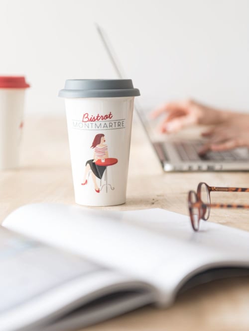 Mug Da Viaggio In Porcellana Bianca Grigia Con Stampe Maisons Du Monde