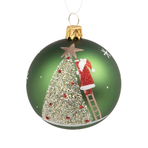 Pallina Di Natale In Vetro Verde Stampa Albero Di Natale E Babbo Natale Maisons Du Monde