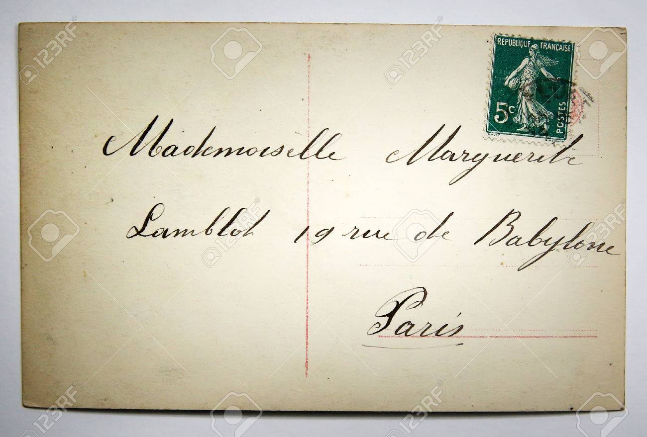 Immagini Stock Antica Cartolina Francese Con Timbro Da Parigi Sfondo Di Carta Stile Retro Nostalgico Image
