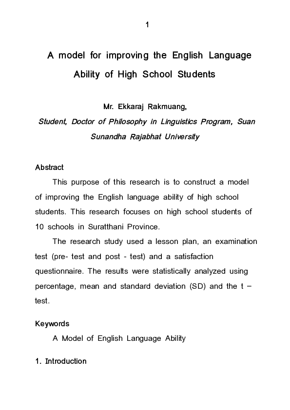 Doc A Model For Improving The English Language Ability Of High School Students Ekkaraj Rakmuang Academia Edu