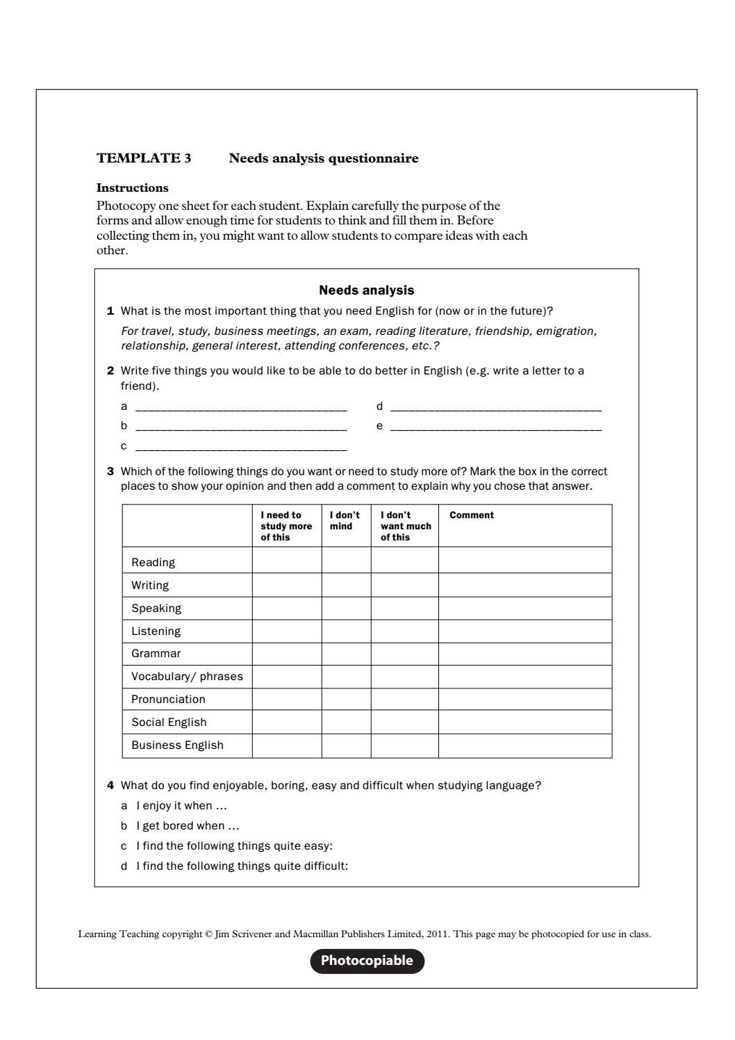 Needs Analysis Questionnaire By Avhenriquezconcha Issuu