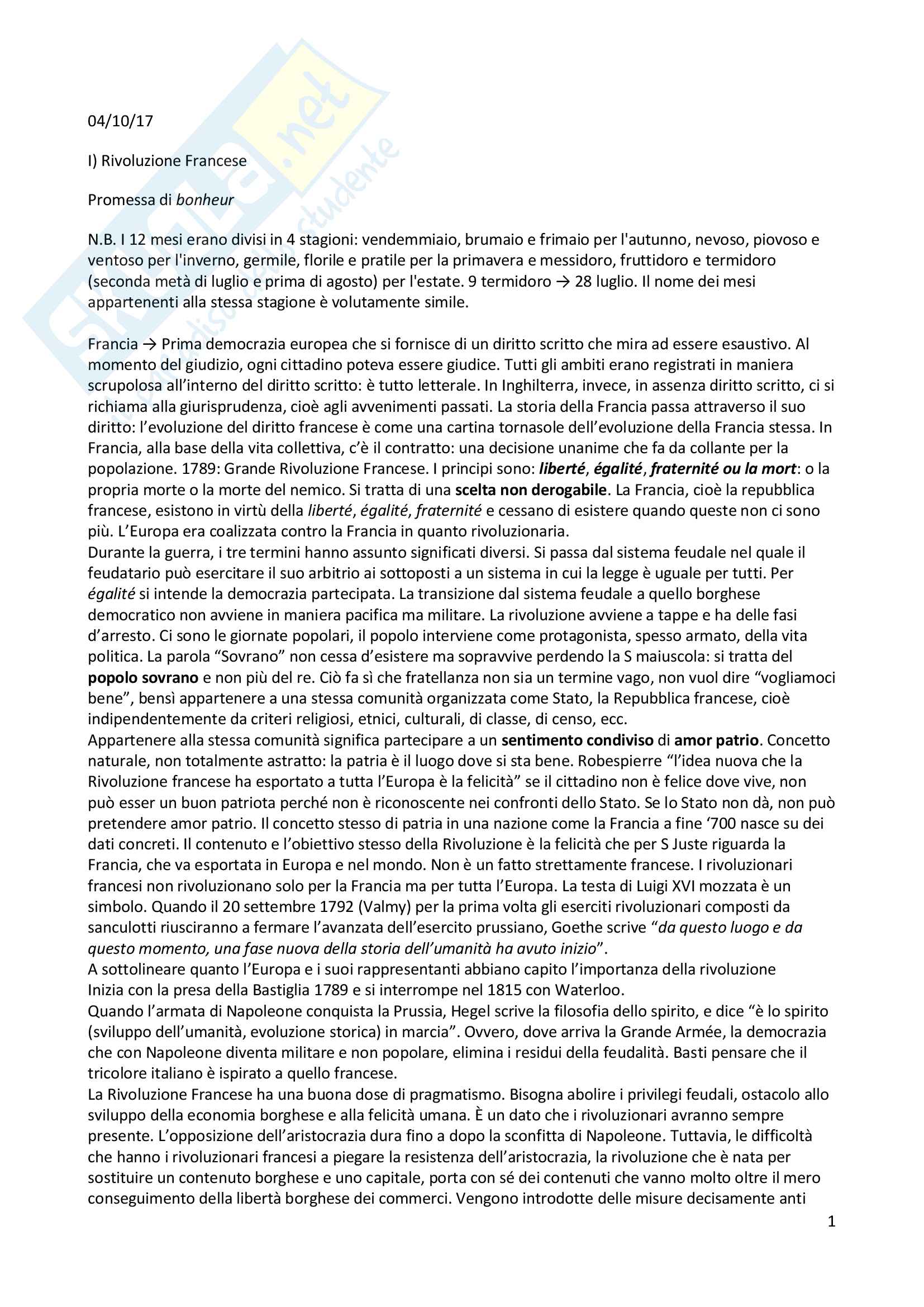 Riassunto La Rivoluzione Francese Di Erica Joy Mannucci Docsity