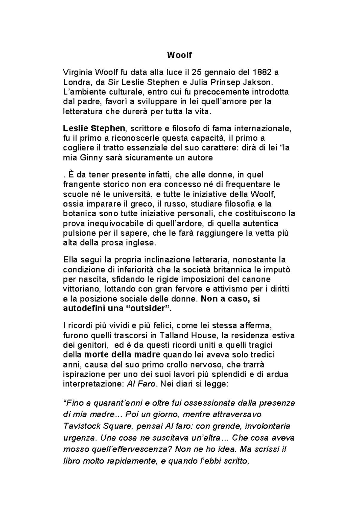 Virginia Woolf Inglese 5 Anno Liceo Classico Studocu