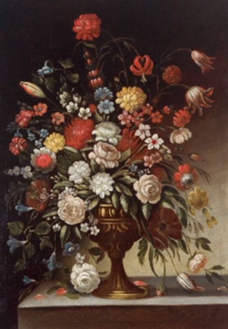 Blumenstrauss In Einer Tonvase Un Mazzo Di Fiori In Un Vaso Ornato Di By Abraham Brueghel On Artnet