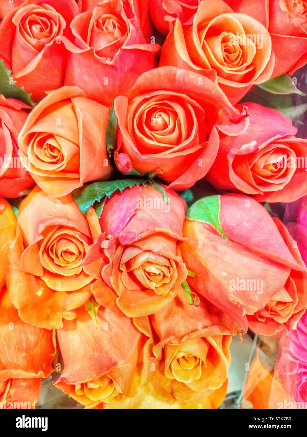 Full Frame Di Un Mazzo Di Fiori Di Arancio Fresco Di Rose E Un Segno Di Primavera Foto Stock Alamy