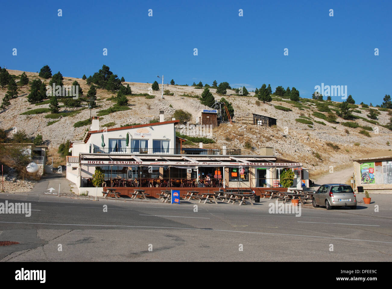 Vista Di Chalet Reynard Il Cafe Sulla Ripida Salita Del Mont Ventoux Famoso Per Il Tour De France Cycle Race Foto Stock Alamy