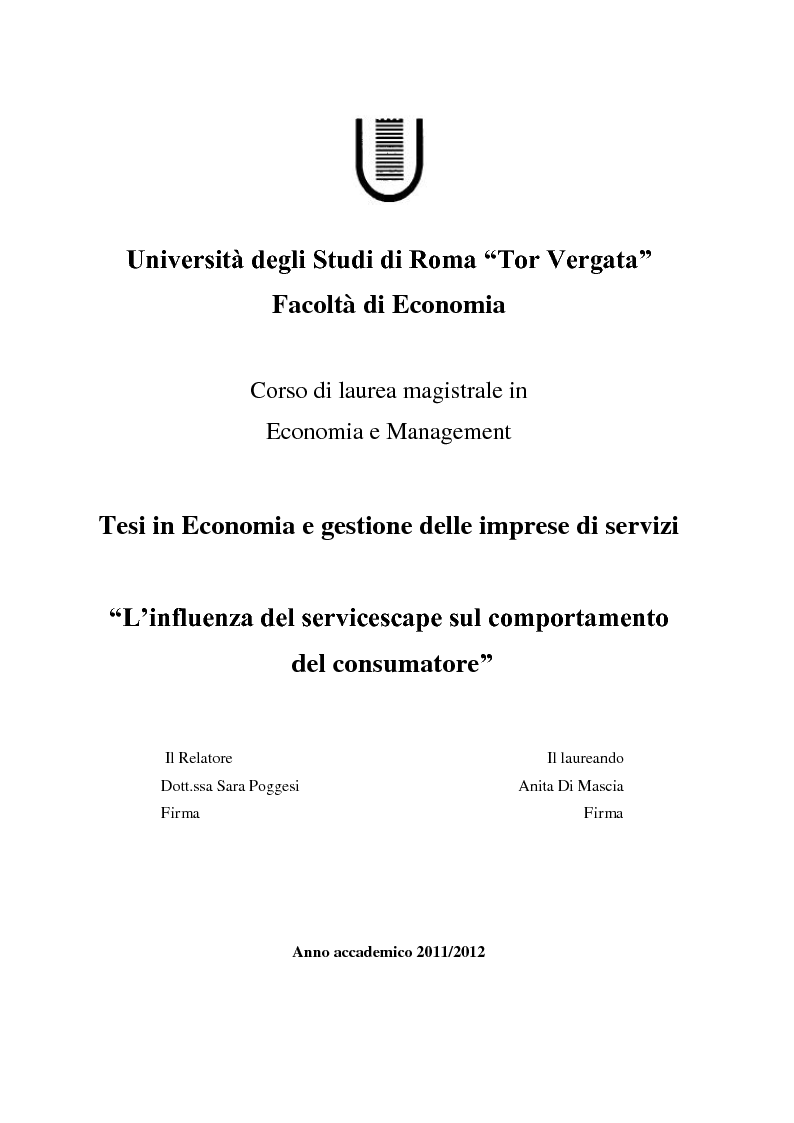 Universita Degli Studi Di Roma Tor Vergata Facolta Di Economia Corso Di Laurea Magistrale In Economia E Management Tesi In Economia E Gestione Delle Imprese Di Servizi L Influenza Del Servicescape Sul Comportamento