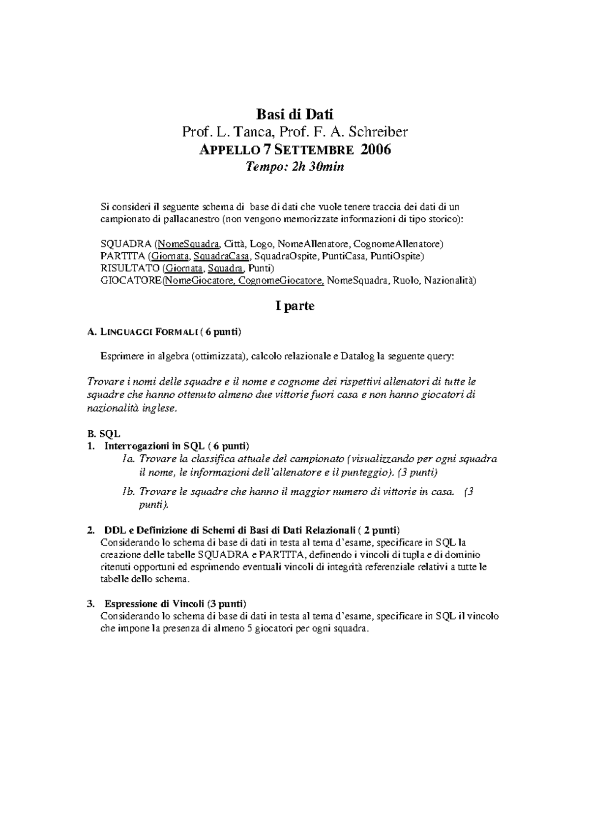 Prova D Esame Svolta Basi Di Dati 1 7 Settembre 06 Studocu