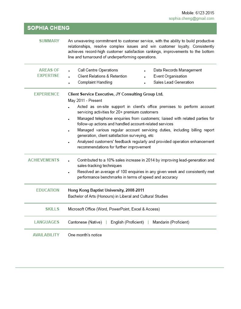 Resume Cv Sample For Account Executive Jobsdb Hong Kong