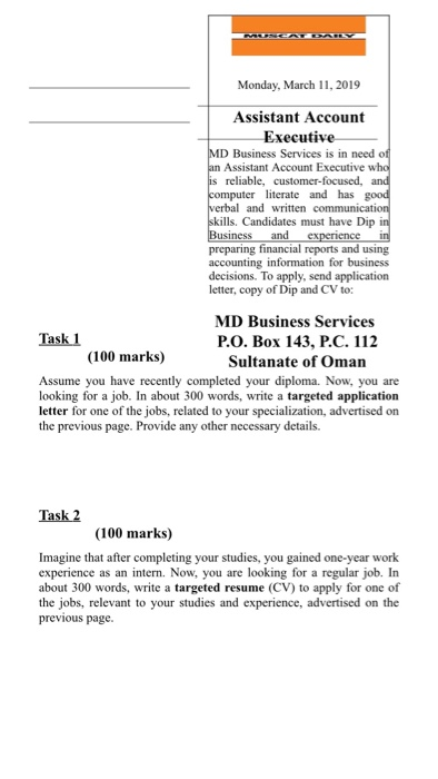 Solved Monday March 11 19 Assistant Account Executive Chegg Com