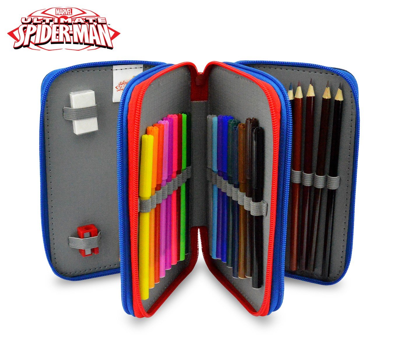 Media Wave Store Sp Astuccio Portapastelli Spiderman 3 Cerniere 43 Pz Scuola Colori