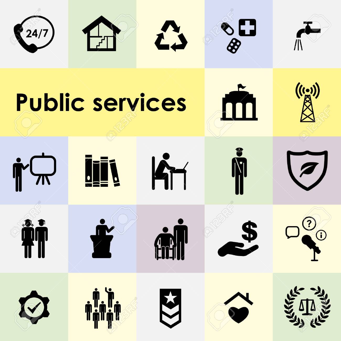 Vector Illustration Of Public Service Icons And Options Symbols Royalty Free Cliparts Vectors And Stock Illustration Image