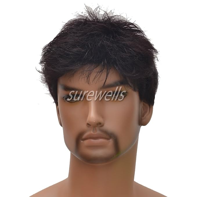 Men Short Brown Wig Handsome Male Daily Costume Synthetic Full Wigs Natural Brown Hair Replacement Wig Clothing Shoes Jewelry Costumes Accessories