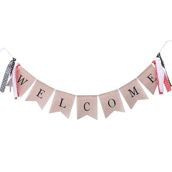 Katoom Striscione Bentornato A Casa Welcome Home Bandiera Iuta Protezione Ambientale Naturale Decorazione Cuore Porta Stanza Giardino Riunione Di Famiglia Inaugurazione Della Casa Escuelasoulsurf Cl