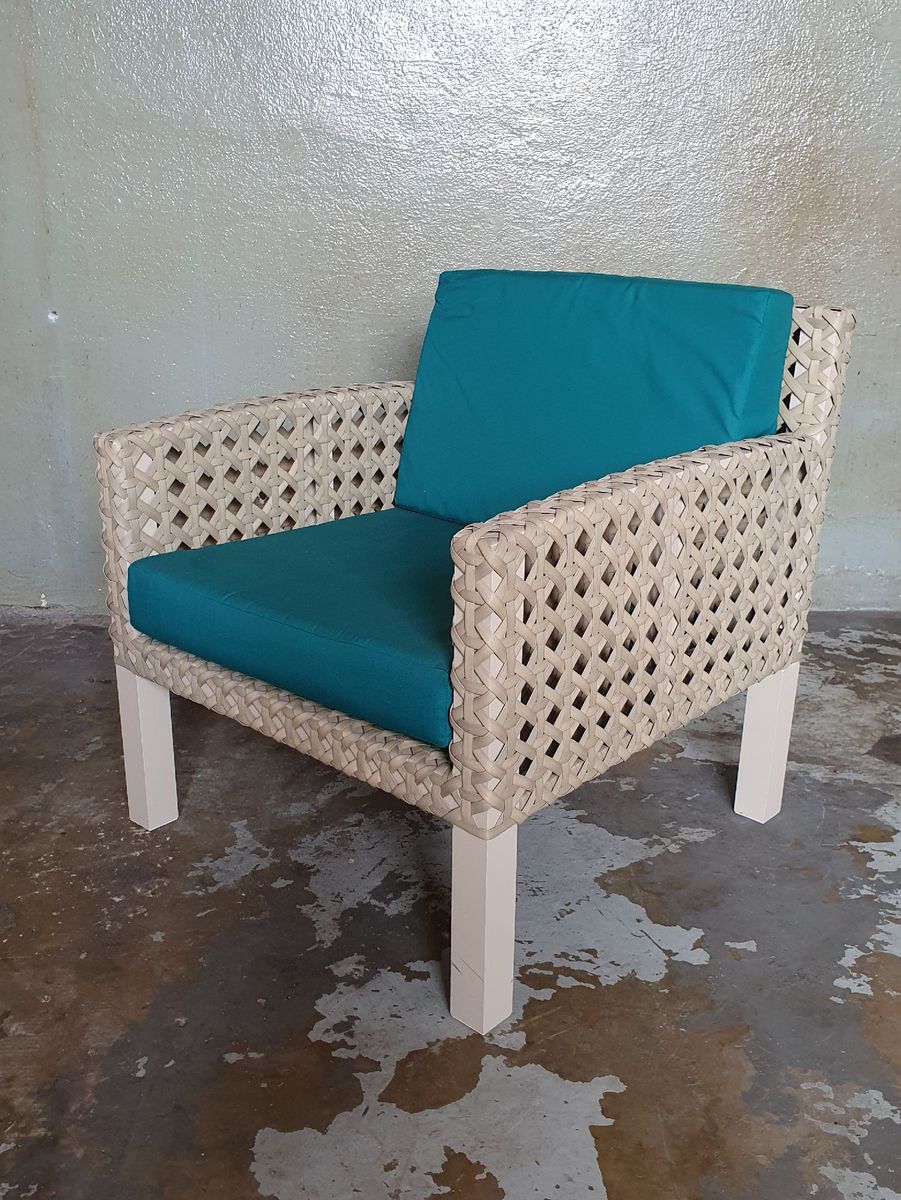 Poltrona em alumínio e fibra sintética, para decoração de varanda, jardim, sacadas Estrutura em alumínio e fibra sintética, assento com almofadas , tecido impermeável com várias opções de estampa para que possa escolher Ideal para ambiente interno e externo A fibra é. 12x de R$ 163,24 Compre Online Outras formas de pagamento. Mesmo em um cantinho do seu quarto Estrutura Alumínio Revestimento Fibra sintética Trama 1x1 vazada, cordão.