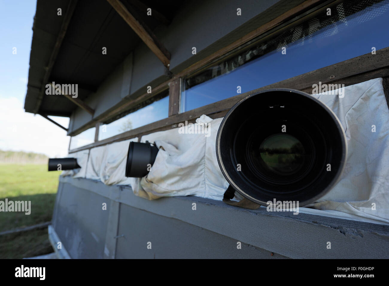 Cameras Pointing Out Of A Bear Watching Hide Kuhmo Finland July Stock Photo Alamy