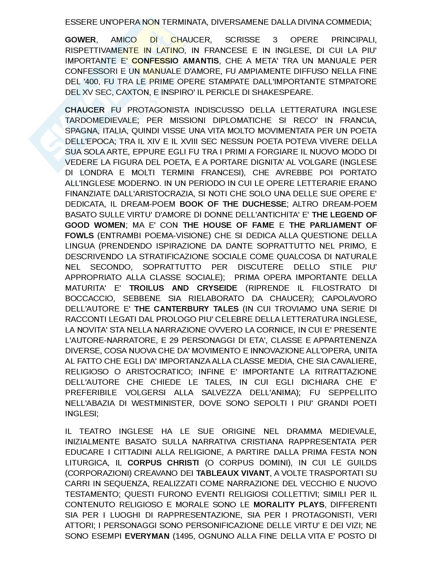 Breve Storia Della Letteratura Inglese Docsity