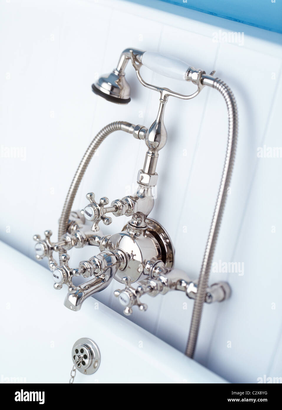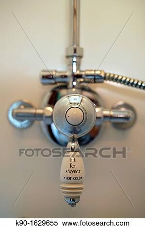 Vecchio Inglese Rubinetto Dell Acqua Di Uno Doccia Indicare Caldo E Acqua Fredda Indicando Il Mezzo Archivio Fotografico K90 Fotosearch